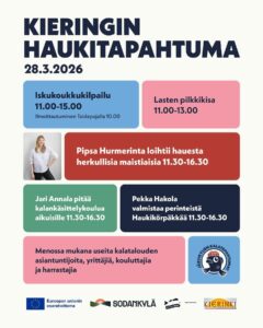 Kieringin Iskukoukkukisa tulee taas ja toteuttaa yhdessä Sodankylän kunnan hallinnoiman Järvikylien kalatapahtumahankeen kanssa entistä ehomman kalakisan oheistapahtumineen. Kisaan osallistutaan kolmella iskukoukulla, osallistumismaksu sisältää syöttäkalat sekä pyydyskepit. Järvellä on valmiita reikiä, joten omaa kairaa ei välttämättä tarvitse. Tapahtumasta voi myös vuokrata tai ostaa koukut, ellei omia ole käytettävissä